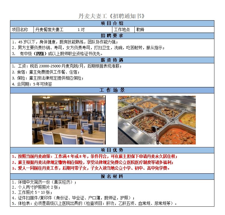 丹麦超高薪夫妻项目来咯!28000丹麦克朗包吃住,餐厅规模大,值得信赖。目前需要两对夫妻,若单人申请也可考虑。