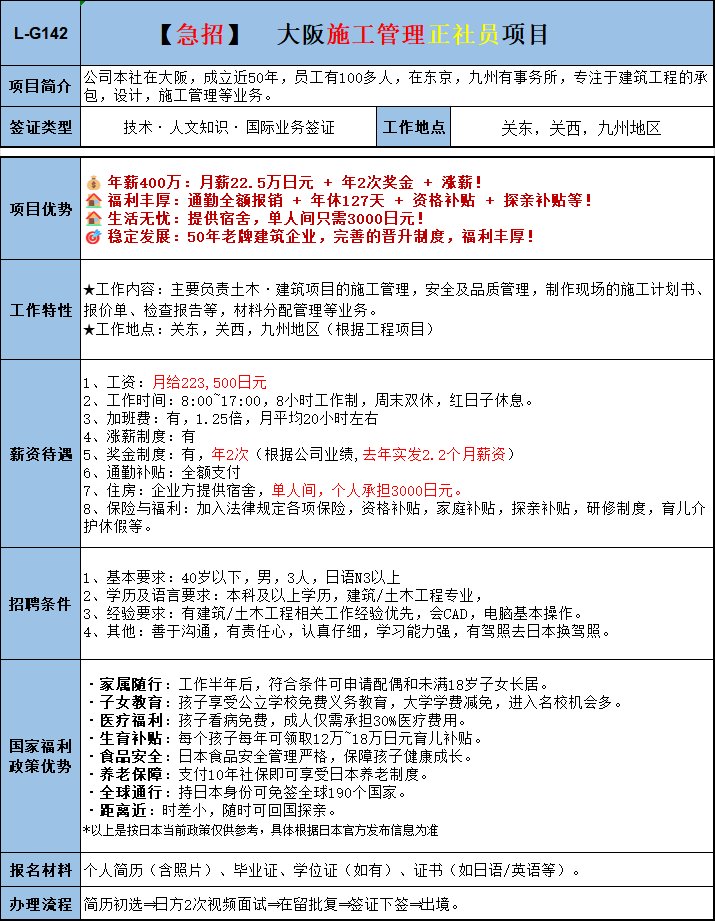 主要从事日本与中国、台湾的贸易业务;翻译等。正规工作签证,有英语交流能力的优先考虑
