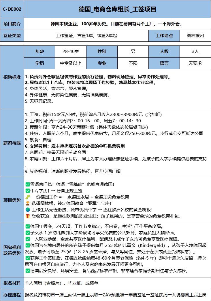报名及资格初审→雇主面试→雇主录取→ZAV预批准→申请签证→签证获批→入境德国正式上岗