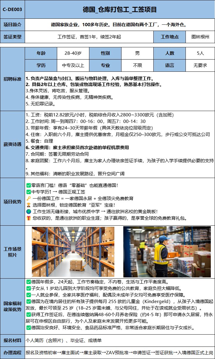 报名及资格初审→雇主面试→雇主录取→ZAV预批准→申请签证→签证获批→入境德国正式上岗