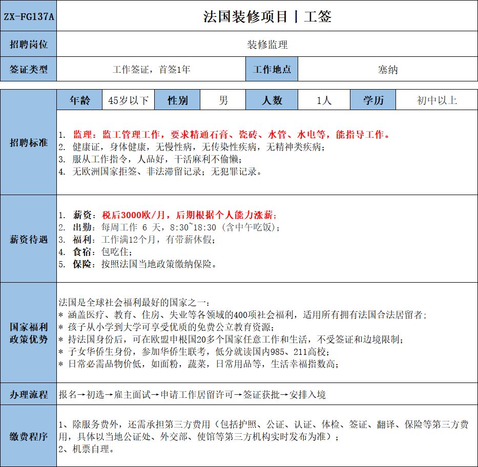 有后厨经验或有相关餐饮经验优先,不会者可培训;包吃住,税后:1900欧元/月,后期根据个人情况涨薪。