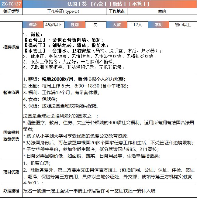 有后厨经验或有相关餐饮经验优先,不会者可培训;包吃住,税后:1900欧元/月,后期根据个人情况涨薪。