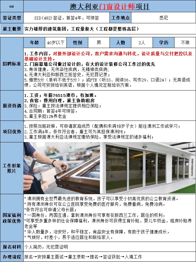 赴澳大利亚(悉尼)- 门窗设计师
