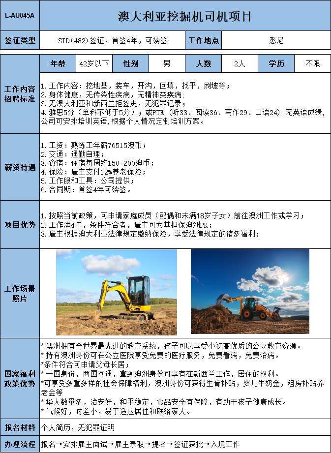 喷涂工,有相关工作经验者优先,无经验者也可;熟练工年薪76515澳币;雇主支付12%养老保险.